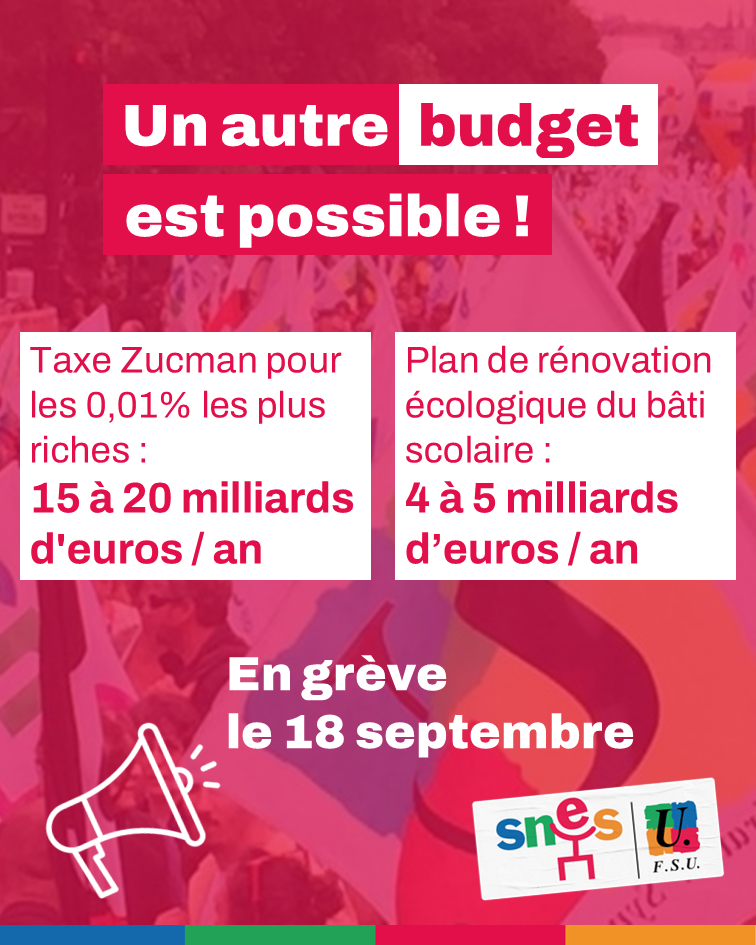 Cette rupture pourra se gagner grâce à un puissant mouvement social qui fait valoir les urgences sociales et environnementales. C’est le moment d’agir pour pour gagner un autre budget ! C’est par la participation de chacun que nous pourrons construire une grève d’ampleur pour faire entendre les urgences pour les services publics, nos rémunérations, nos carrières et nos métiers. »