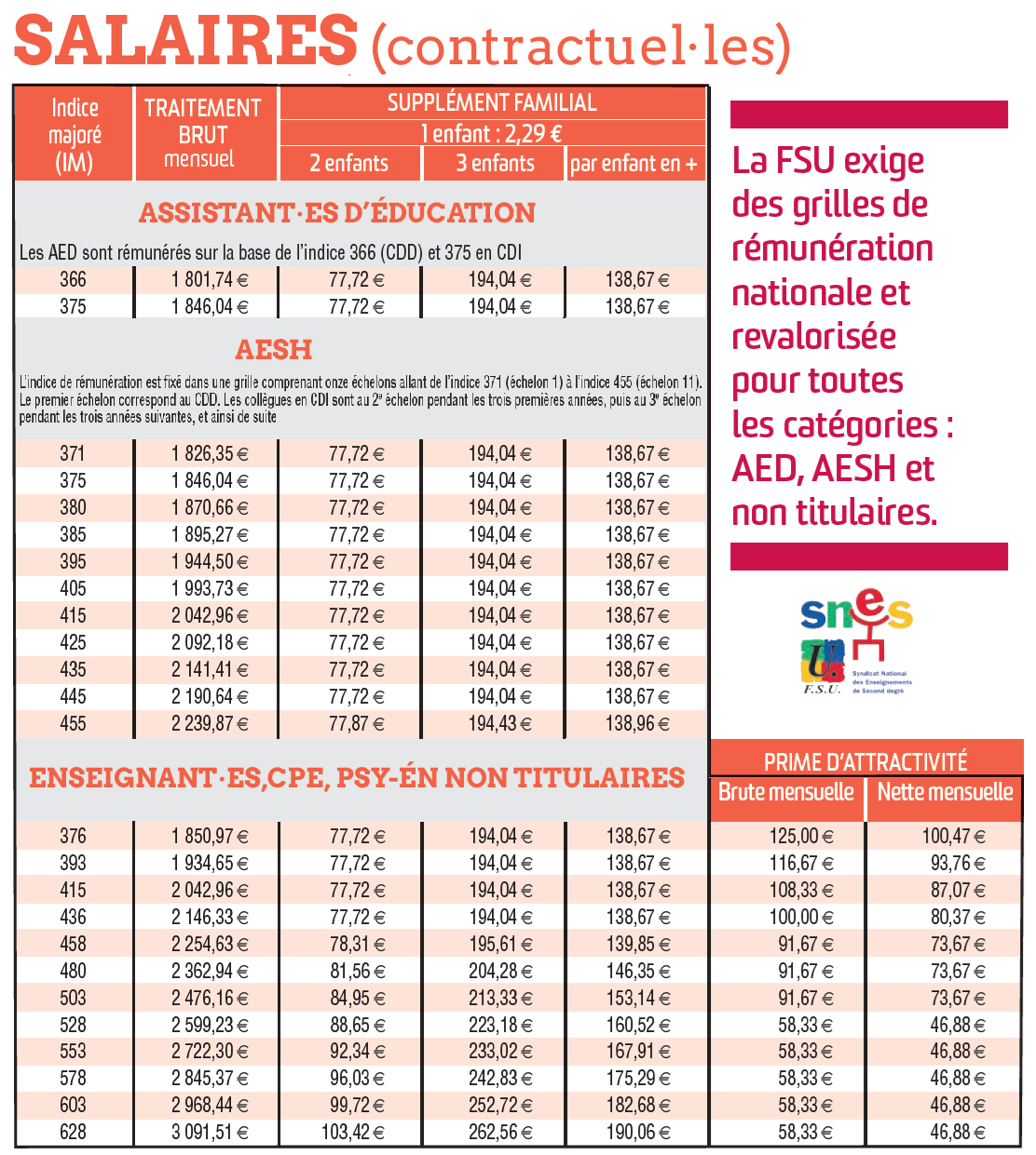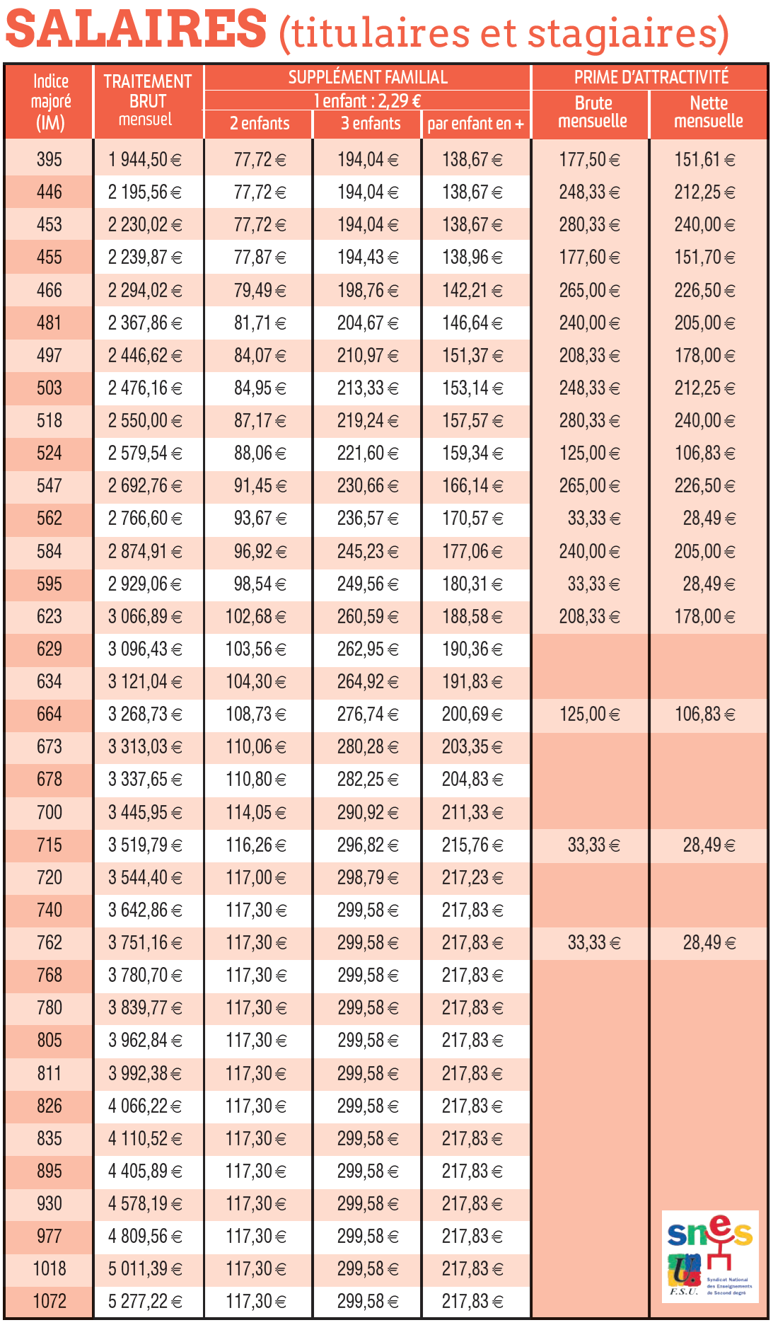 Vous trouverez sur cette page l’essentiel concernant vos fiches de paie, pour préciser votre cas et trouver de plus amples informations (pour les indemnités, heures supp’, retraites, etc. selon le statut, le corps, l’échelon, etc.) : vous pouvez consulter le supplément de l’US Mag’ joint en fin d’article et bien sûr, les différents onglets du site national qui sont une mine d’or d’informations.