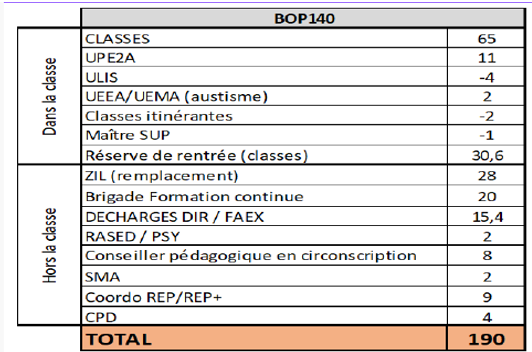 FSU : Vous avez prévu 2 postes RASED et PsyEn , vous ne voulez pas créer des postes en plus car vous pensez qu’il n’y aura personne. Les chef.fes préfèrent créer des HSA. On cache la pénurie et le non investissement du gouvernement actuel qui refuse de mettre des postes budgétaires.