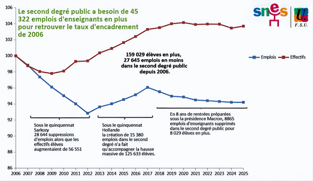 ndlr. Le SNES-FSU exige l’annulation des suppressions d’emplois annoncées ; un rapide coup d’œil en arrière montre que l’argument démographique a très bon dos...
