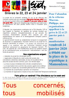 L’intersyndicale contre la réforme des retraites ; semaine du 20 au 24 janvier 2020