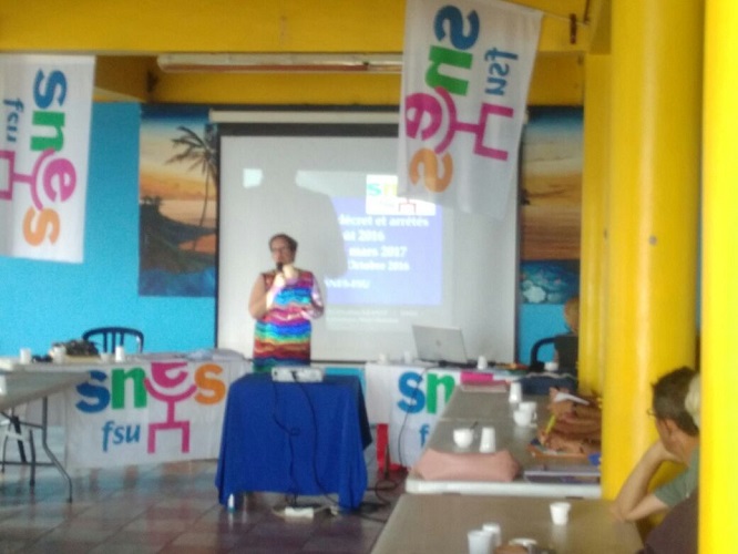Hier 31 octobre 2017 s’est déroulée la première partie du stage animée par Nadine KRANTZ (responsable nationale des contractuels au SNES-FSU). Mayotte Première s’est rendue au Koropa, où se tenait ce stage destiné aux contractuels.