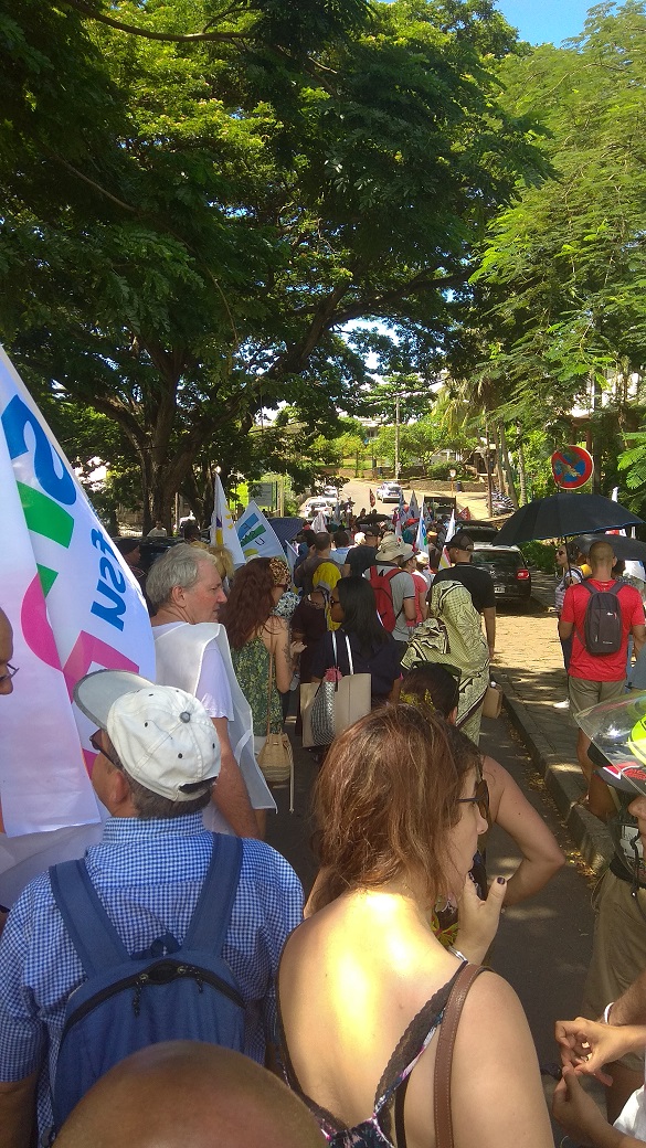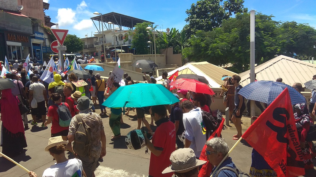 Vers 10h30 et malgré la chaleur, les manifestants ont pris la direction du Lycée Bamana puis du rond point du manguier. Après un "repos" mérité d’un quart d’heure, le cortège a emprunté la rue du Commerce pour se rendre devant la Mairie de Mamoudzou et enfin descendre place de la République après avoir fait quelques tours du rond point de la Barge.